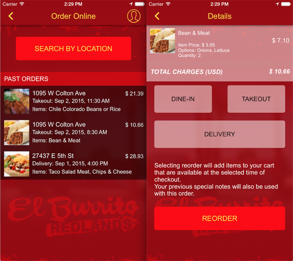 - Displays up to 10 past orders